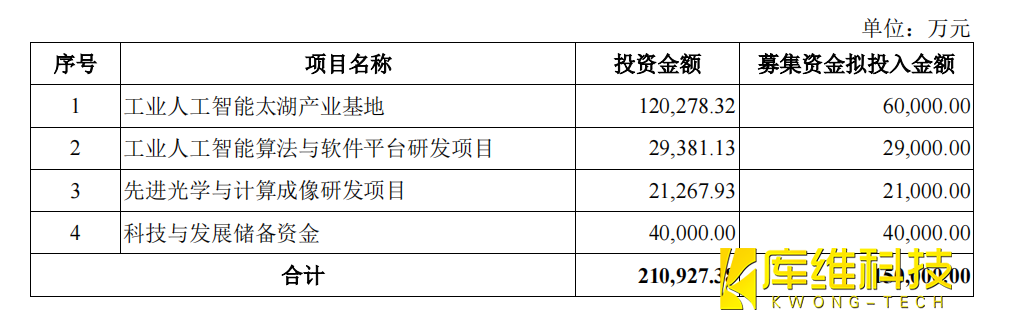 凌云光本次發行募集資金將投入以下四個項目:“工業人工智能太湖產業基地項目”、“工業人工智能算法與軟件平臺研發項目”、“先進光學與計算成像研發項目”、“科技與發展儲備資金”。