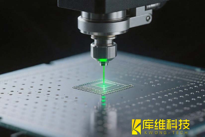 傳統(tǒng)機(jī)械鉆孔依賴金剛石刀具物理切削,在加工0.1mm以下微孔時(shí),刀具易磨損導(dǎo)致孔徑誤差達(dá)±15μm,且材料損耗率高達(dá)46%。普通CO?激光切割雖無(wú)需接觸,但熱影響區(qū)(HAZ)超過(guò)100μm,會(huì)引發(fā)芯片材料晶格畸變,導(dǎo)致信號(hào)傳輸損耗增加25%。