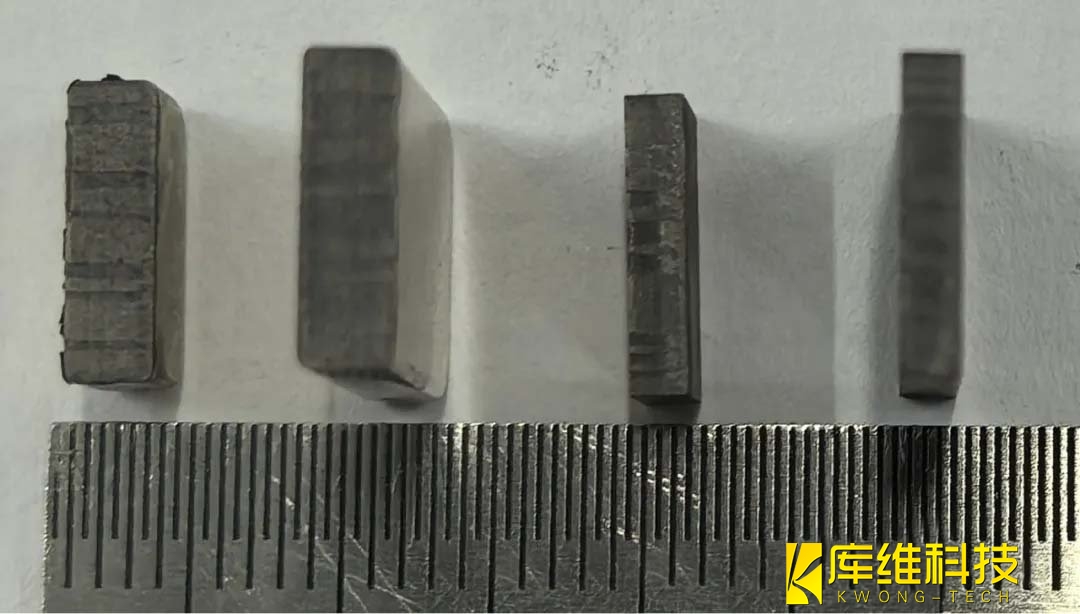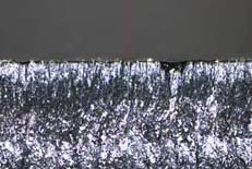 請見圖所示,該圖展示了厚度為3~4mm且外表鍍鎳的磁鐵經加工后截面對比及截面微觀組織細部。