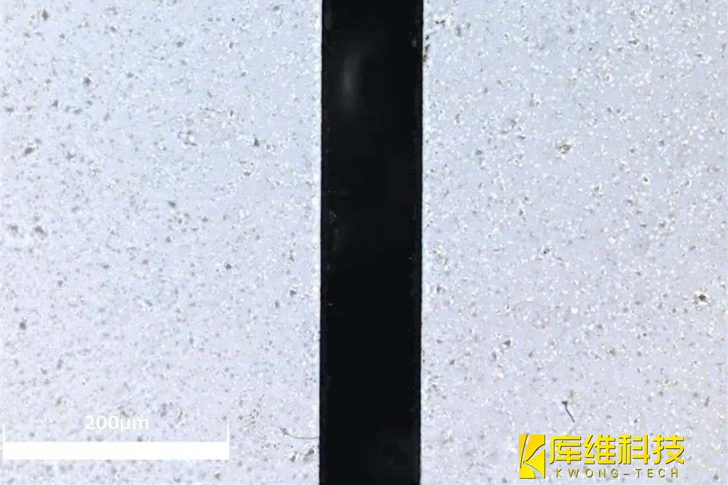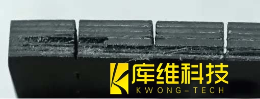 如圖所示,硬質PCB板經過加工后,斷面平整,無明顯熱影響區(成功解決了傳統激光加工易導致產品發黑的問題)。