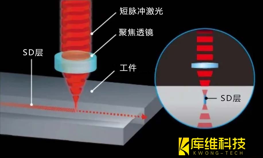 原理:通過(guò)精密激光束掃描形成改質(zhì)層,使晶圓可通過(guò)外加應(yīng)力沿激光路徑拓展。