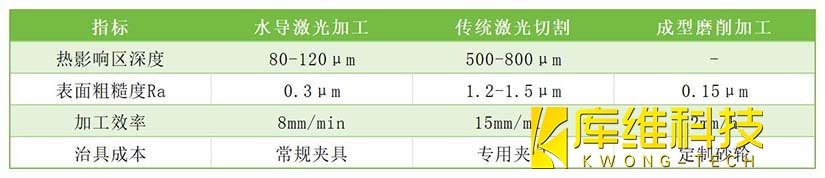 實驗顯示,水導激光在保證表面質量的前提下,綜合加工成本較磨削工藝降低62%,產品交付周期縮短75%。特別在加工異形氣隙槽、微型定位孔等精密結構時,展現出獨特的技術適應性。