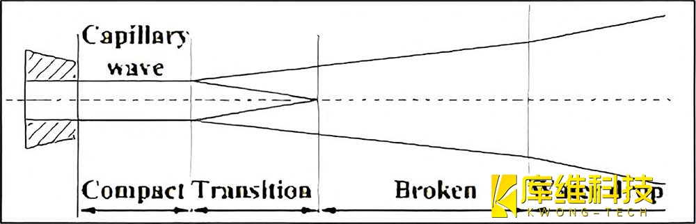 • ??緊密過渡區(Compact Transition)??:射流剛脫離噴嘴,呈連續流態但波動顯著。